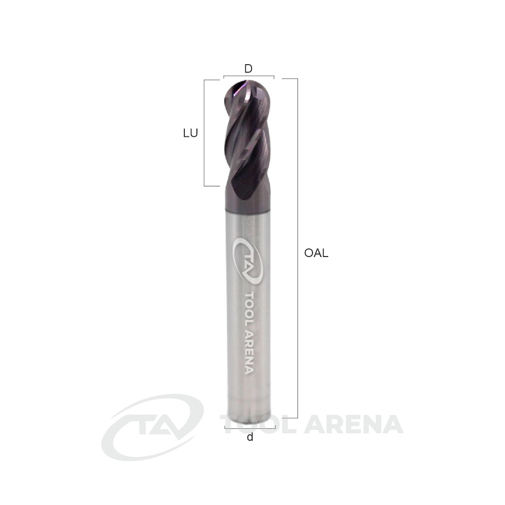 742301 Фреза твердосплавная сферическая D1x2x50x4xZ4 HP UH1204 TiAlN UNIHARD