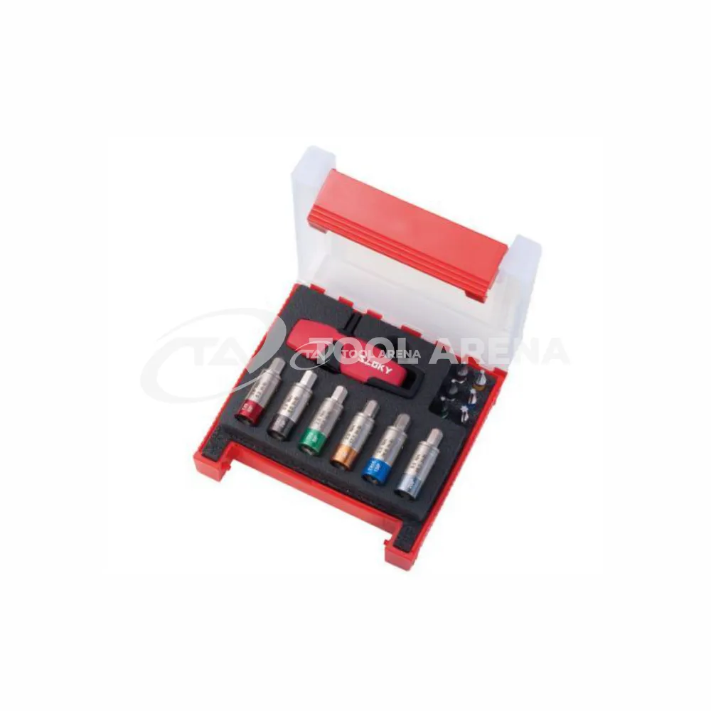 Специальная удобная универсальная рукоятка с 6 различными адаптерами (0,6 ~ 5,5 Нм) и 6 шт. 25-миллиметровых бит Torx®.