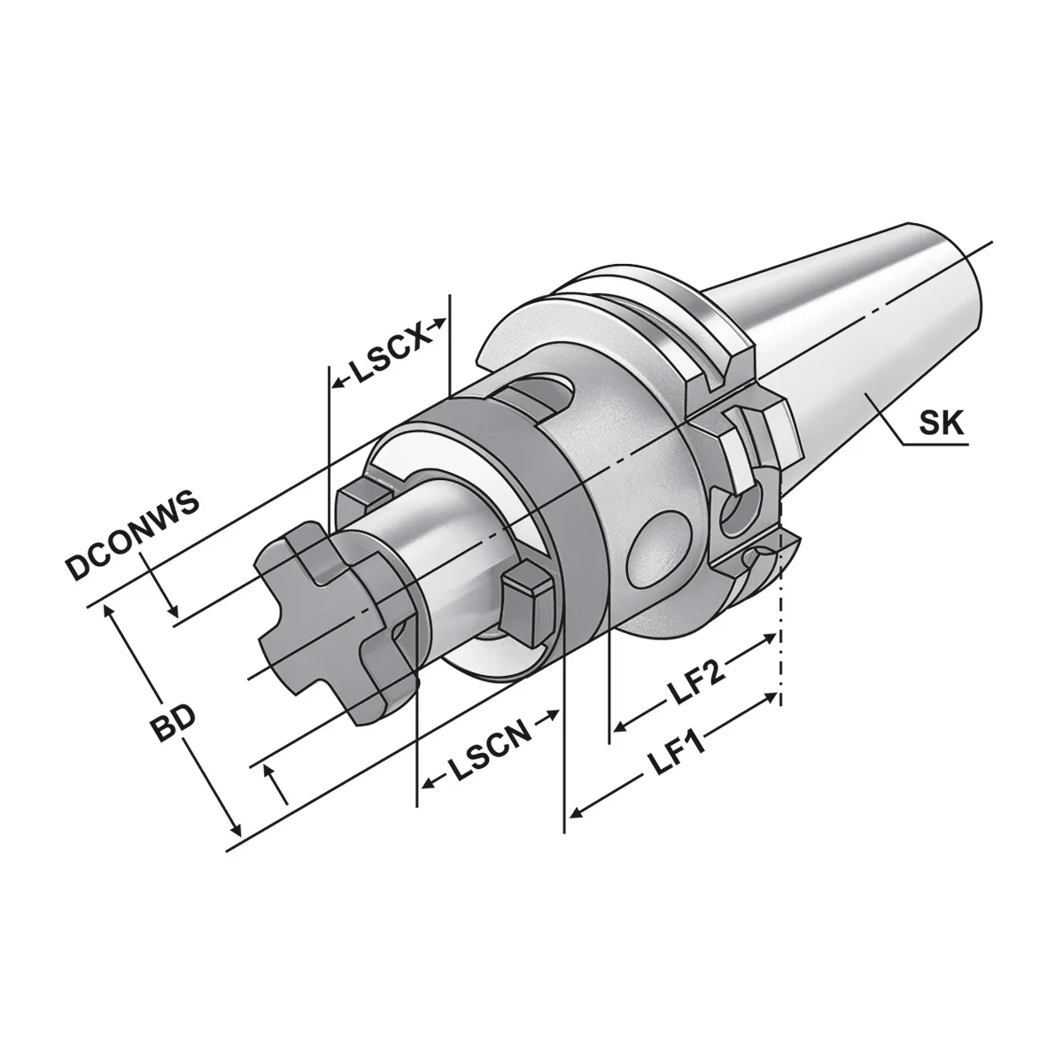 DC.403.10.22 Оправка комбинированная для насадных и дисковых фрез DC-SK40 - 22- 55, ISO 7388-1, форма AD/AF, Kemmler