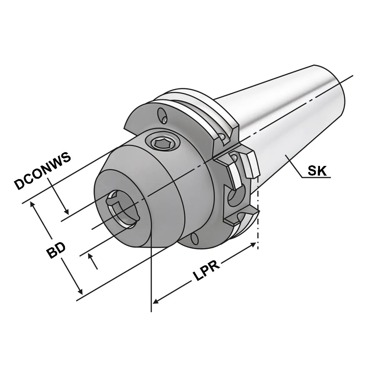 403.04.10.2.K Оправка для концевых фрез (Weldon) SK40 - 10- 160, с каналами для СОЖ DIN 69871, форма AD/AF (AD/B), Kemmler