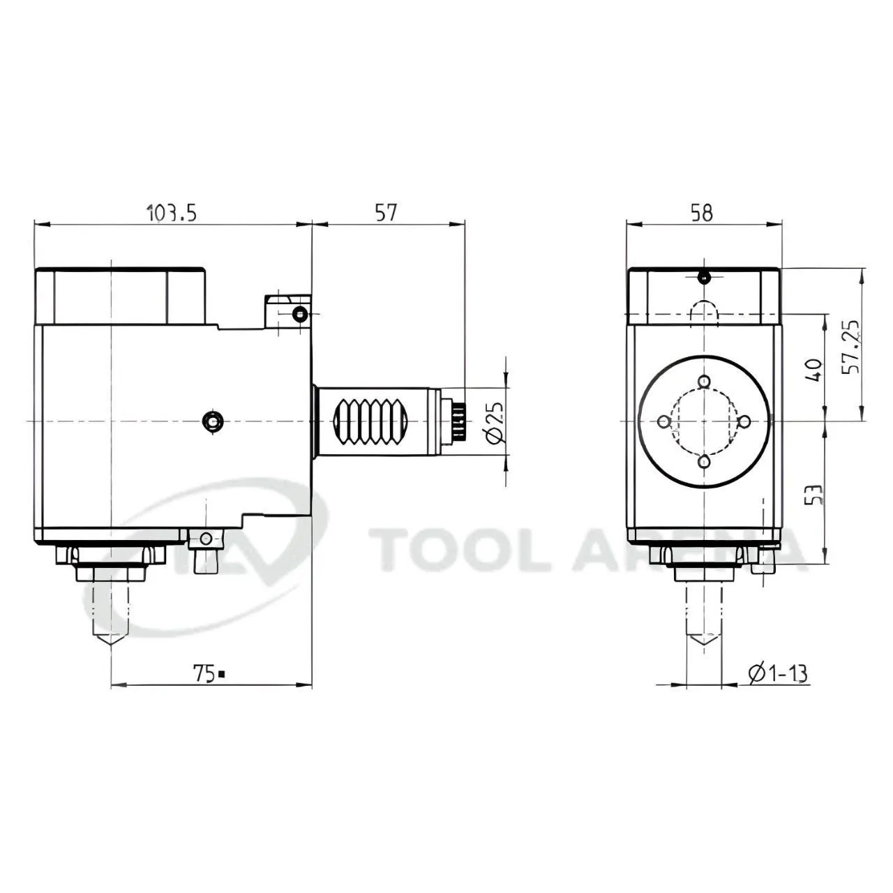 2.700.080 Блок приводной, угловой, хвостовик VDI 25 (DIN 5480), цанговый патрон ER20A, PRECI-FLEX, левосторонний/правосторонний, внешняя и центральная подача СОЖ, EPPINGER