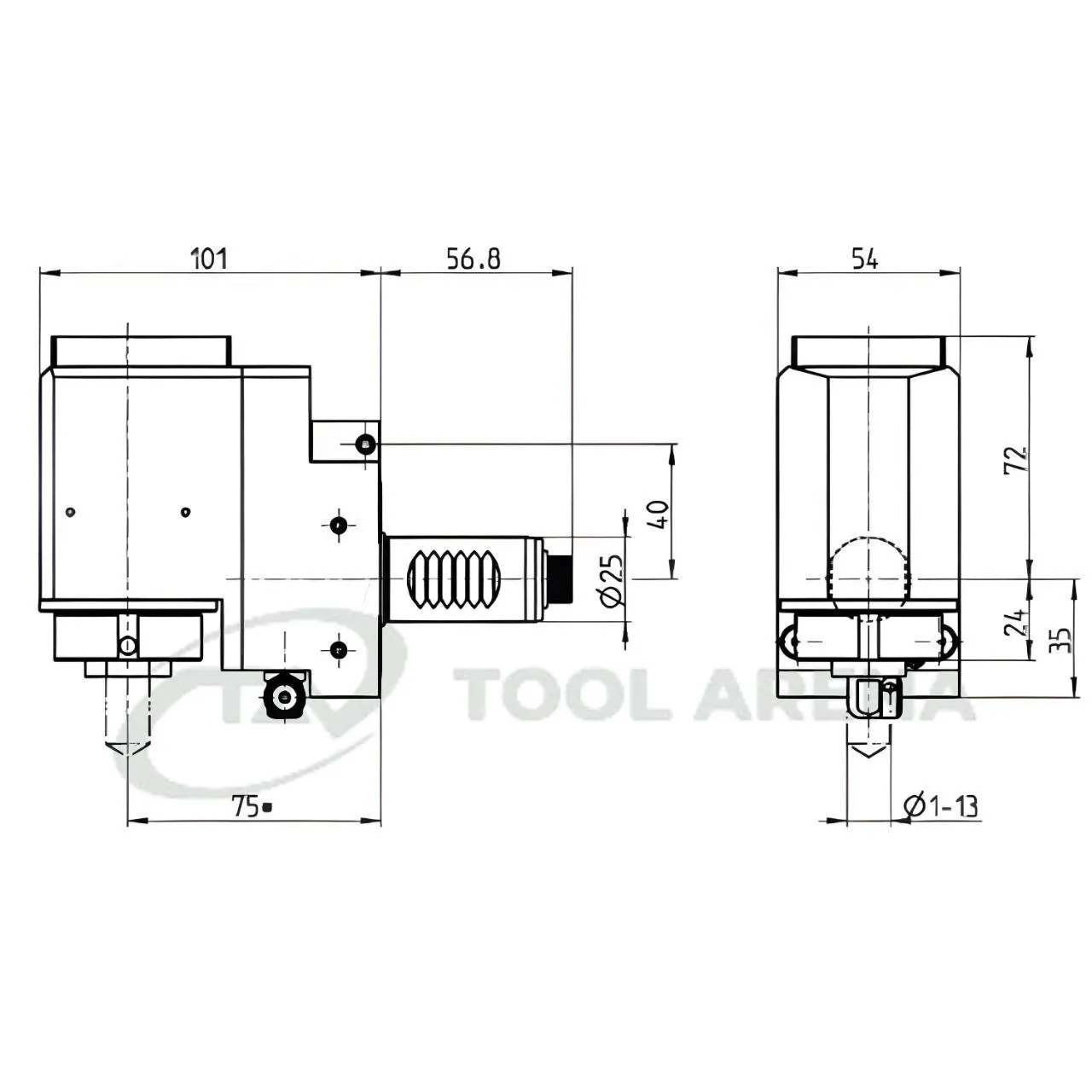 9.245.229 Блок приводной, угловой, хвостовик VDI 25 (DIN 5480), укороченный цанговый патрон ER20A, PRECI-FLEX, левосторонний/правосторонний, внешняя подача СОЖ, EPPINGER