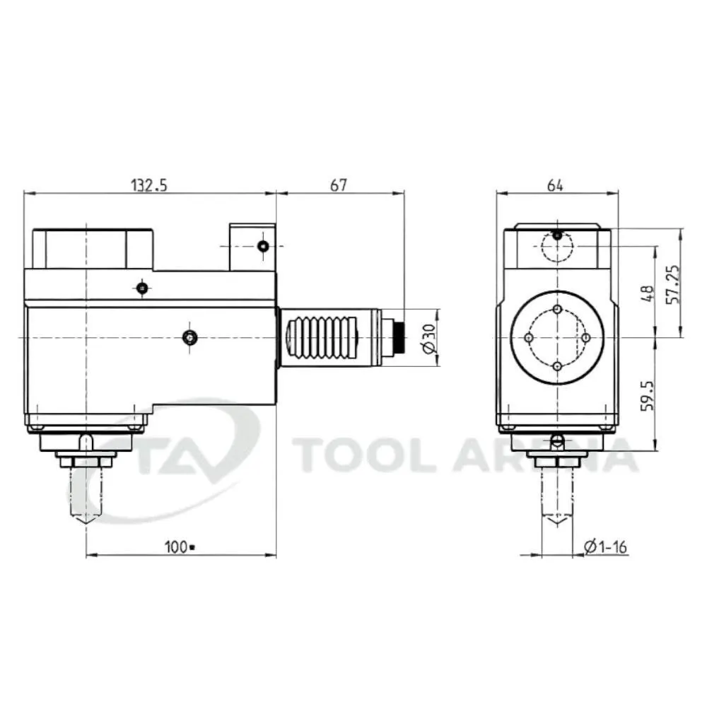 3.200.701 Блок приводной, угловой, хвостовик VDI 30 (DIN 5480), цанговый патрон ER25A, PRECI-FLEX, правосторонний, внешняя и центральная подача СОЖ, EPPINGER