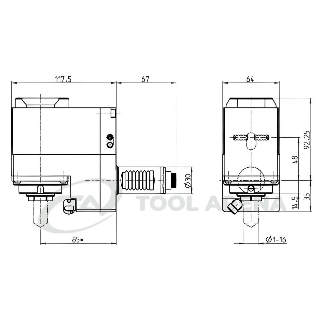 9.501.264 Блок приводной, угловой, хвостовик VDI 30 (DIN 5480), укороченный цанговый патрон ER25A, PRECI-FLEX, правосторонний, внешняя подача СОЖ, EPPINGER