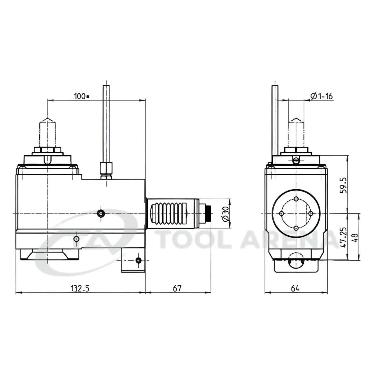 3.200.671 Блок приводной, угловой, хвостовик VDI 30 (DIN 5480), укороченный цанговый патрон ER25A, PRECI-FLEX, левосторонний/правосторонний, внешняя подача СОЖ, EPPINGER