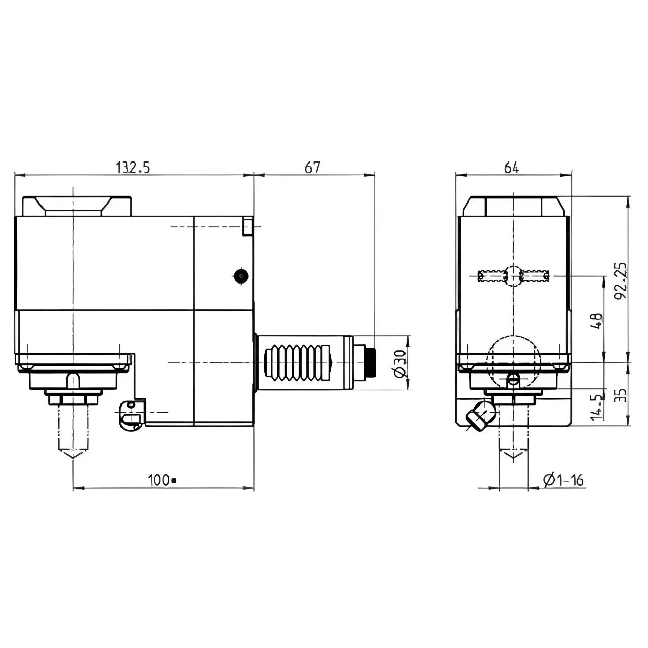 3.200.673 Блок приводной, угловой, хвостовик VDI 30 (DIN 5480), укороченный цанговый патрон ER25A, PRECI-FLEX, левосторонний/правосторонний, внешняя подача СОЖ, EPPINGER