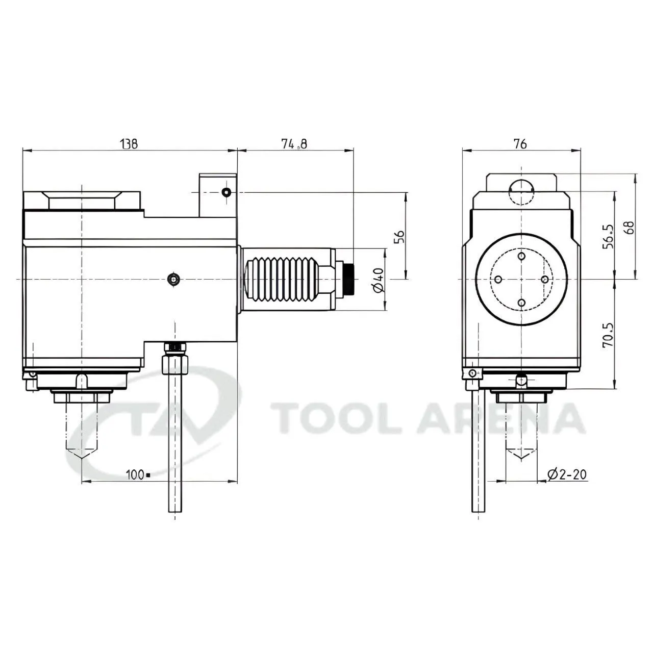 4.200.900 Блок приводной, угловой, хвостовик VDI 40 (DIN 5480), цанговый патрон ER32A, PRECI-FLEX, правосторонний, внешняя подача СОЖ, EPPINGER