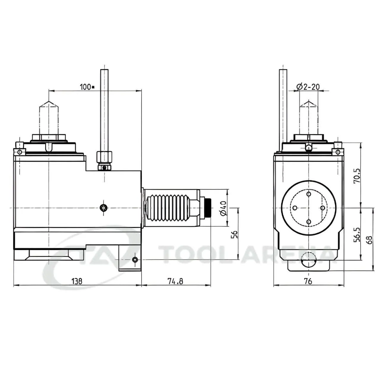 4.200.901 Блок приводной, угловой, хвостовик VDI 40 (DIN 5480), цанговый патрон ER32A, PRECI-FLEX, левосторонний, внешняя подача СОЖ, EPPINGER