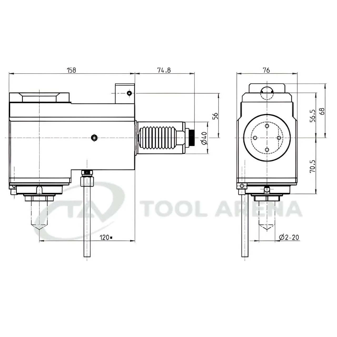 4.200.902 Блок приводной, угловой, хвостовик VDI 40 (DIN 5480), цанговый патрон ER32A, PRECI-FLEX, правосторонний, внешняя подача СОЖ, EPPINGER