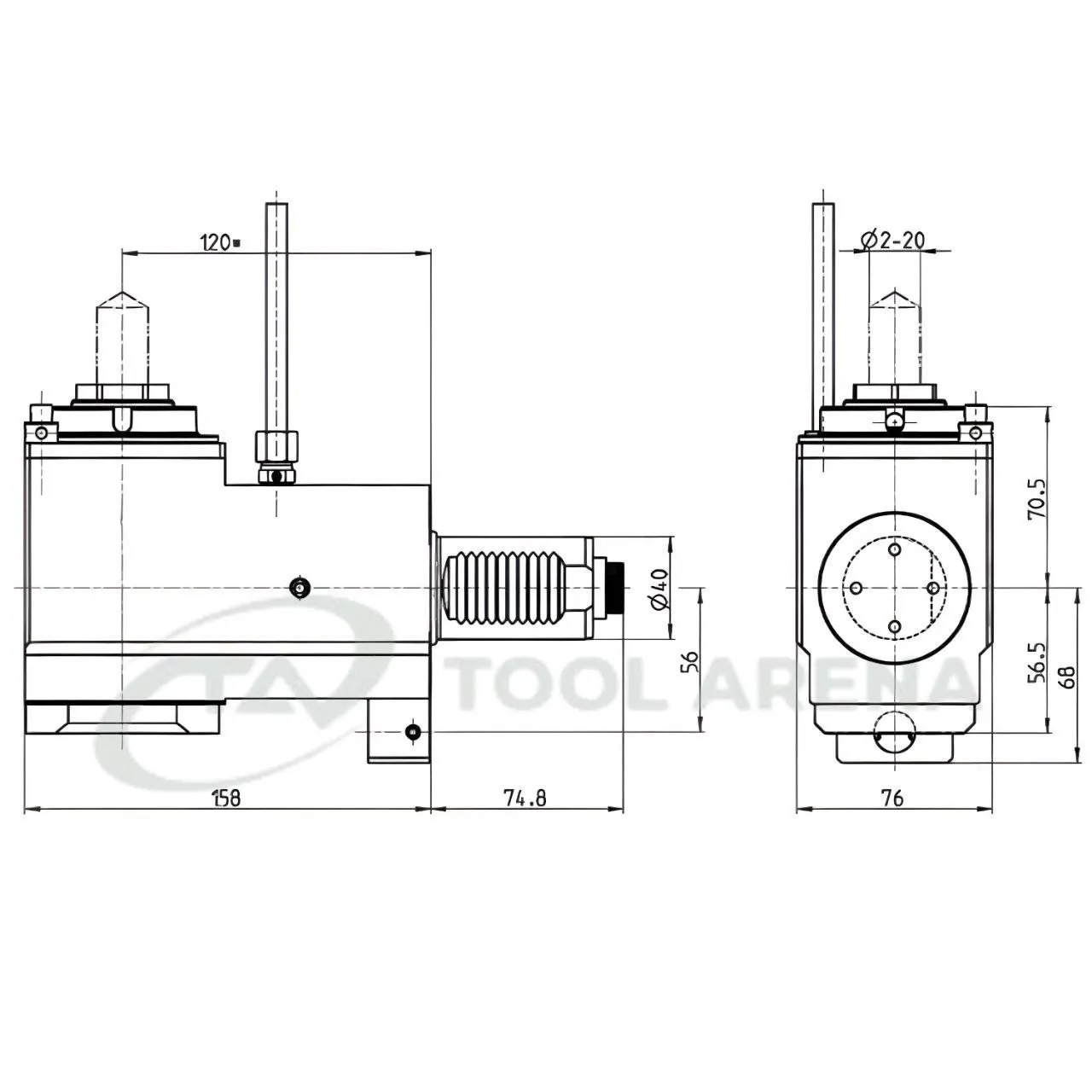 4.200.903 Блок приводной, угловой, хвостовик VDI 40 (DIN 5480), цанговый патрон ER32A, PRECI-FLEX, левосторонний, внешняя подача СОЖ, EPPINGER
