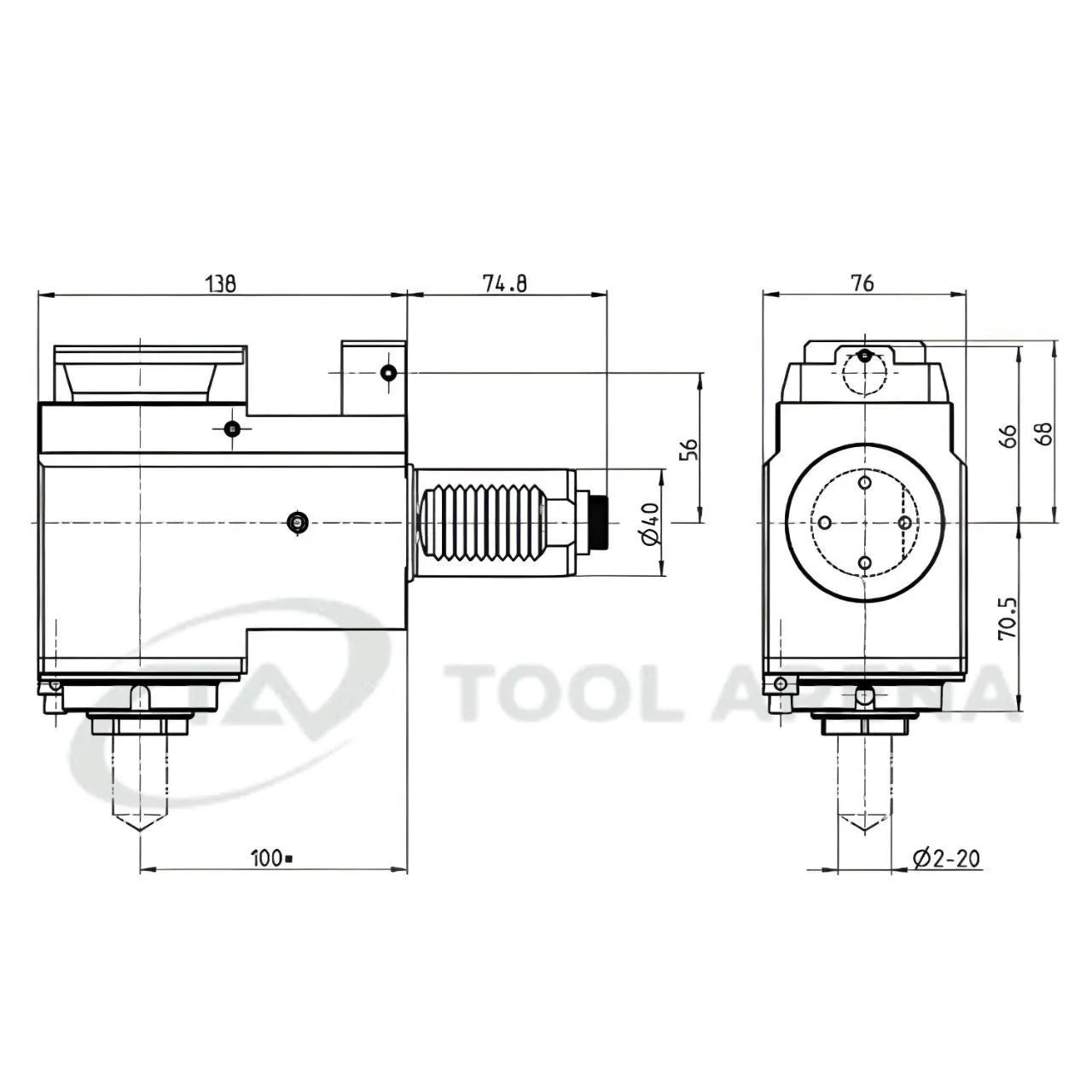 4.201.000 Блок приводной, угловой, хвостовик VDI 40 (DIN 5480), цанговый патрон ER32A, PRECI-FLEX, правосторонний, внешняя и центральная подача СОЖ, EPPINGER
