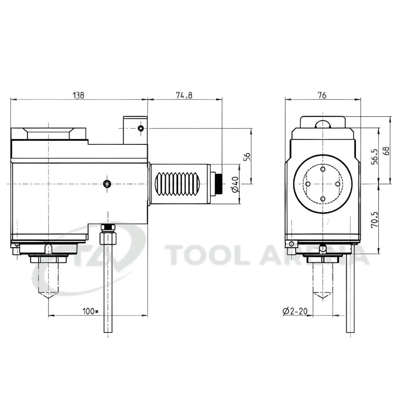 4.200.965 Блок приводной, угловой, хвостовик VDI 40 (DIN 5480), цанговый патрон ER32A, PRECI-FLEX, левосторонний/правосторонний, внешняя подача СОЖ, EPPINGER