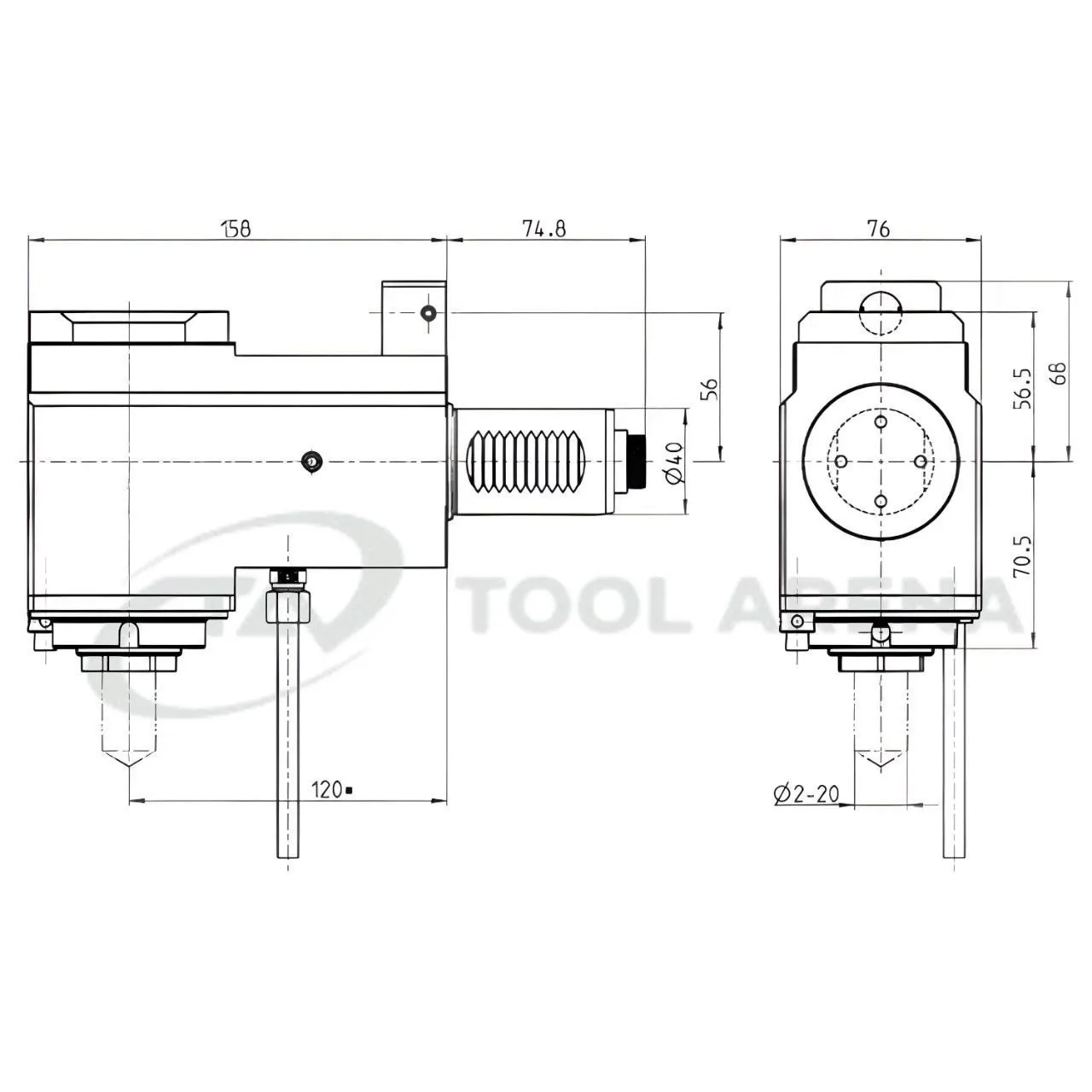 4.200.967 Блок приводной, угловой, хвостовик VDI 40 (DIN 5480), цанговый патрон ER32A, PRECI-FLEX, левосторонний/правосторонний, внешняя подача СОЖ, EPPINGER