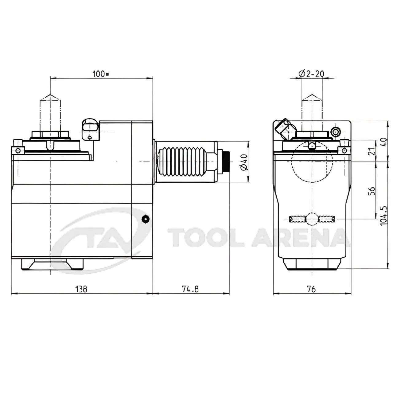 9.706.267 Блок приводной, угловой, хвостовик VDI 40 (DIN 5480), укороченный цанговый патрон ER32A, PRECI-FLEX, левосторонний, внешняя подача СОЖ, EPPINGER
