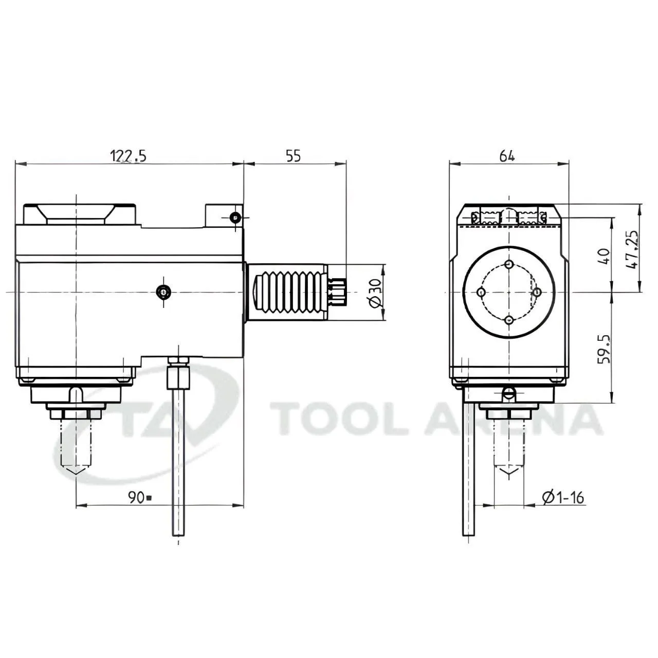 3.200.751 Блок приводной, угловой, хвостовик VDI 30 (DIN 5482), цанговый патрон ER25A, PRECI-FLEX, правосторонний, внешняя подача СОЖ, EPPINGER