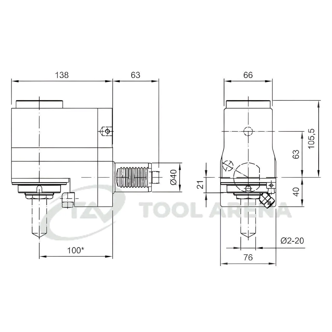 9.707.280 Блок приводной, угловой, хвостовик VDI 40 (DIN 5482), укороченный цанговый патрон ER32A, PRECI-FLEX, правосторонний, внешняя подача СОЖ, EPPINGER
