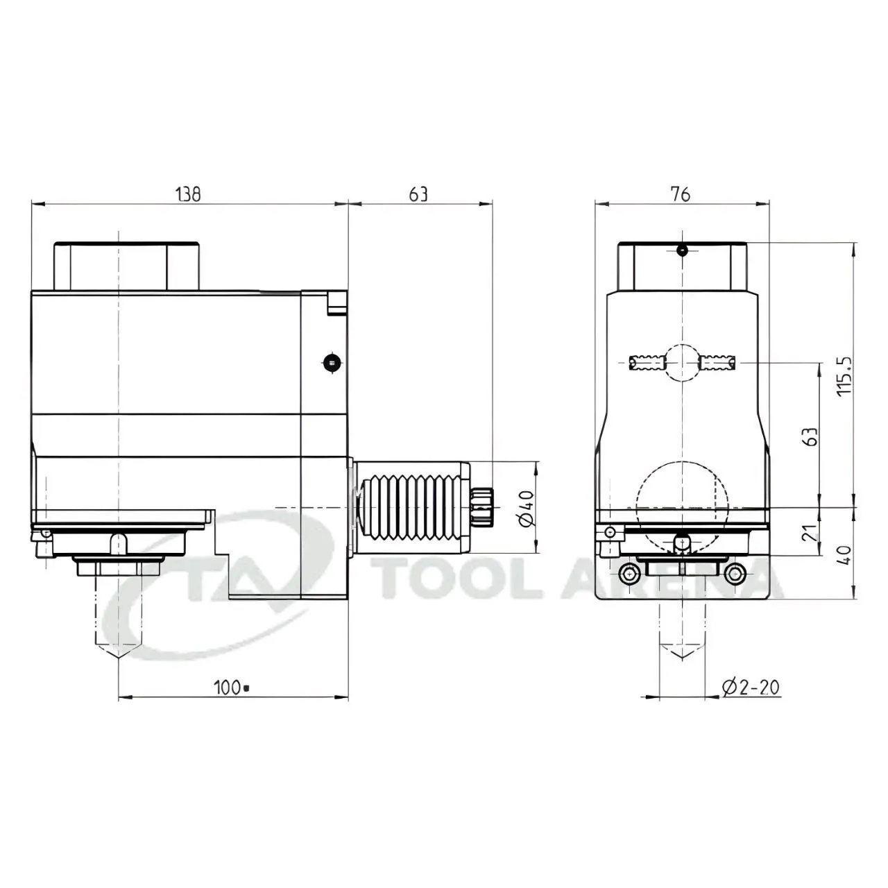 Приводной блок подходит для станков с револьверной головкой типа Sauter VDI 40, DIN 5482, B17x14