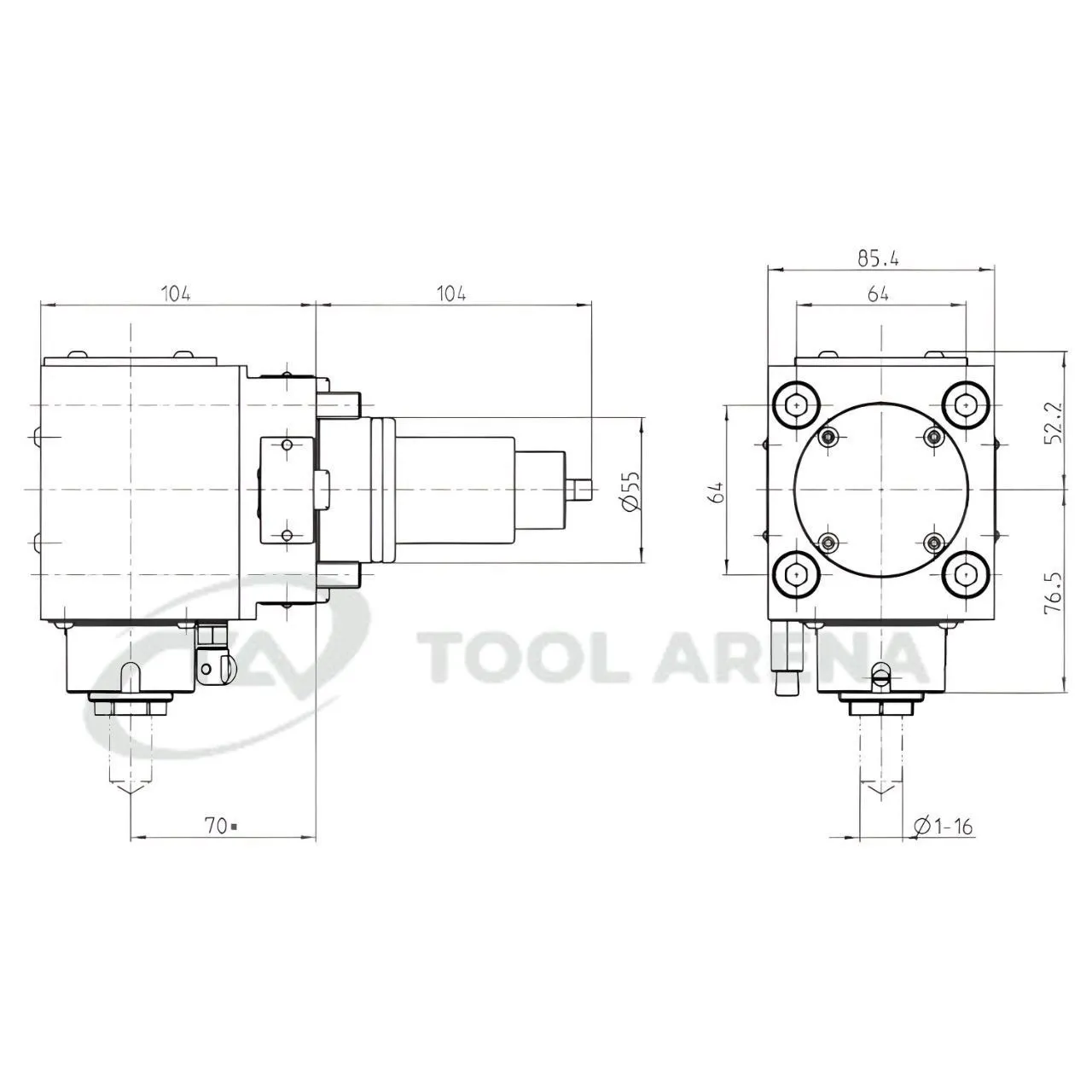 7.073.270 Блок приводной, угловой, хвостовик BMT 55, цанговый патрон ER25A, PRECI-FLEX, левосторонний/правосторонний, внешняя подача СОЖ, EPPINGER