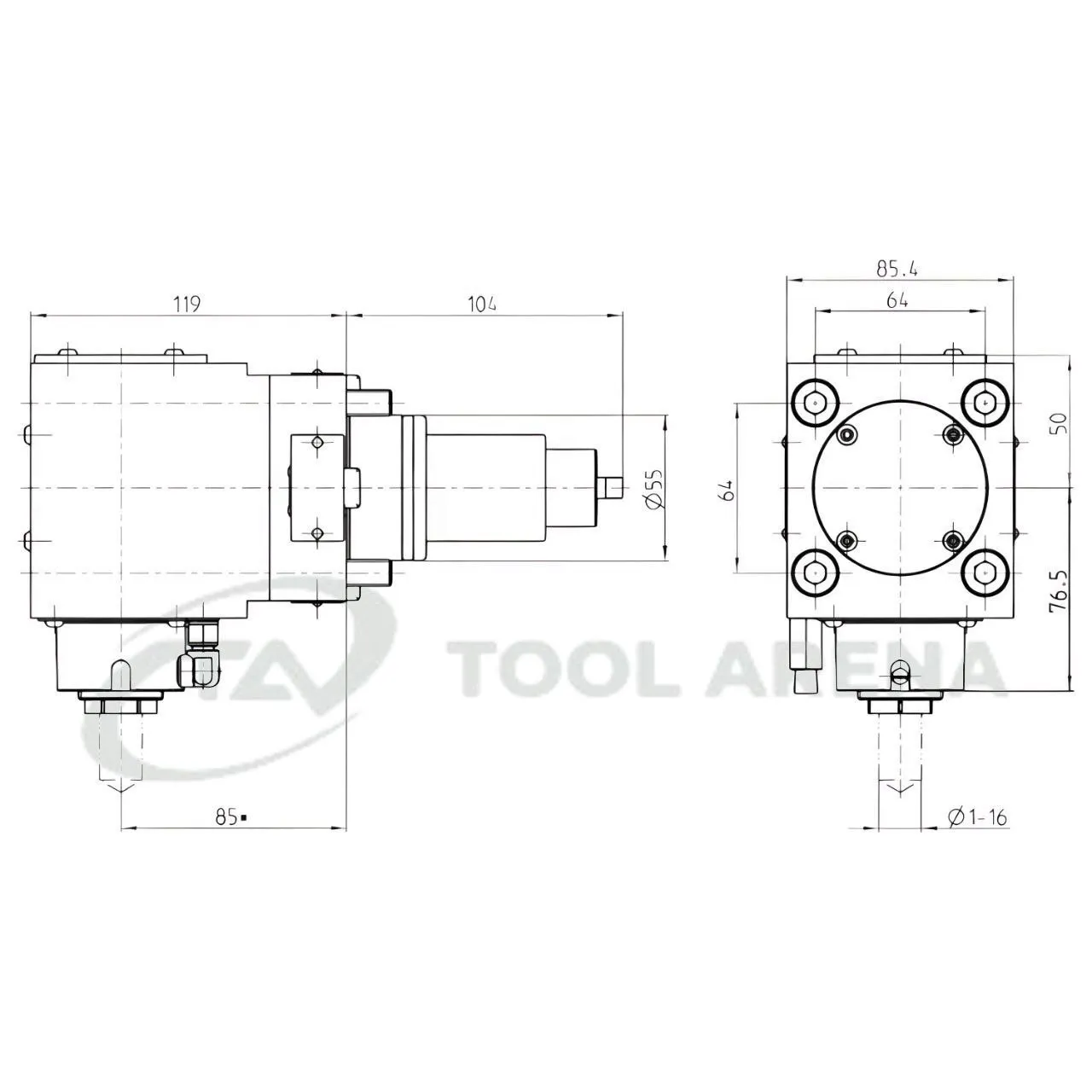 7.073.280 Блок приводной, угловой, хвостовик BMT 55, цанговый патрон ER25A, PRECI-FLEX, левосторонний/правосторонний, внешняя подача СОЖ, EPPINGER