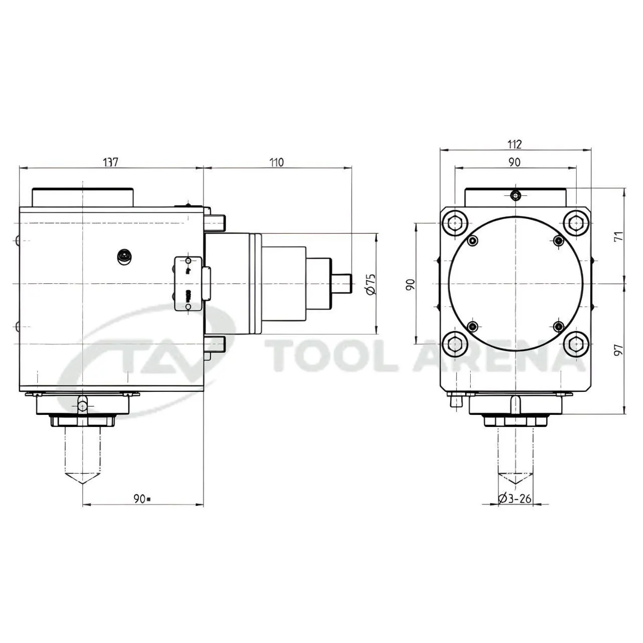 Приводной блок подходит для станков с револьверной головкой BMT 75, тип Doosan / Hwacheon / Hyundai Wia