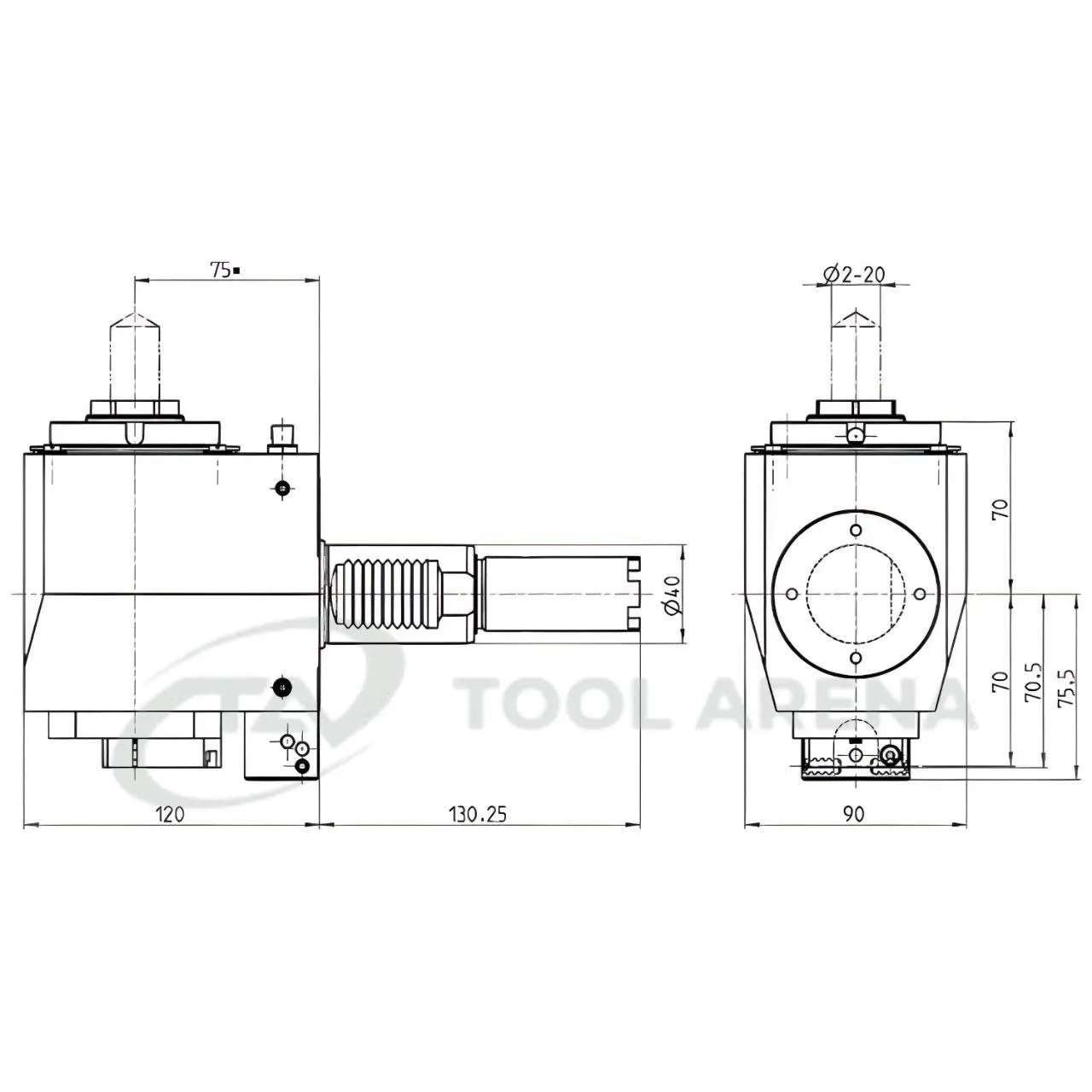 4.201.330 Блок приводной, угловой, хвостовик VDI 40 (HAAS), цанговый патрон ER32A, PRECI-FLEX, левосторонний, внешняя и центральная подача СОЖ, EPPINGER