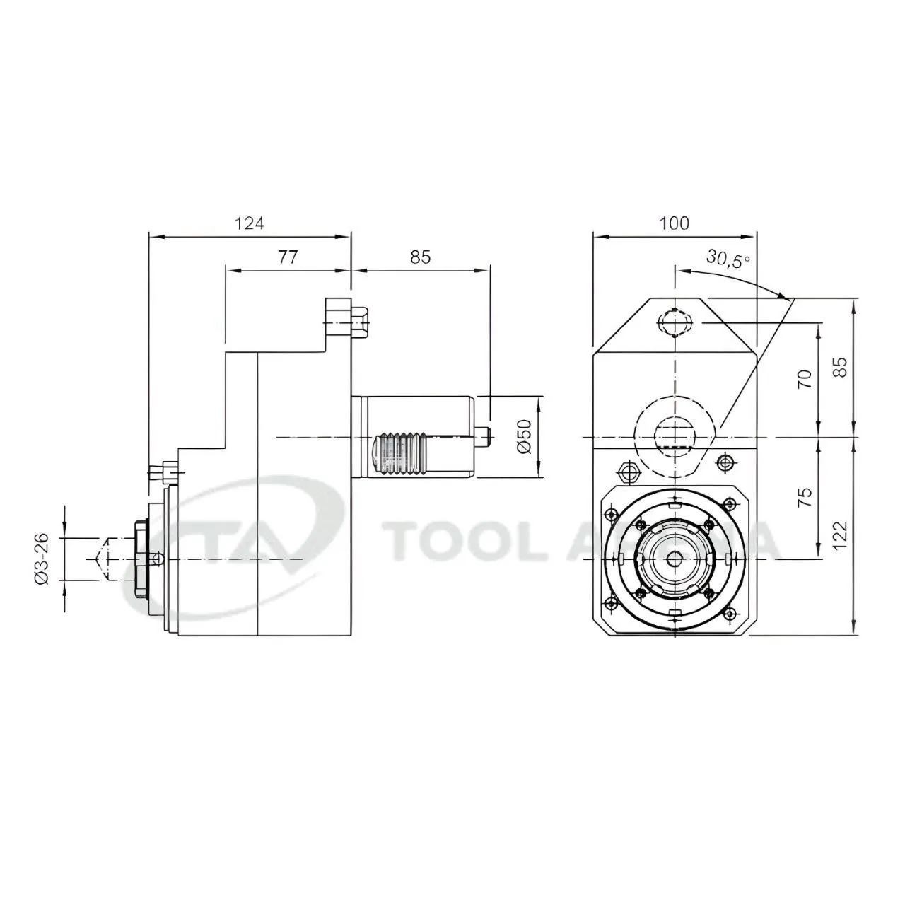 7.072.515 Блок приводной, прямой со смещением, хвостовик QUICK TURN NEXUS 300/350, цанговый патрон ER40A, PRECI-FLEX, внешняя и центральная подача СОЖ, EPPINGER