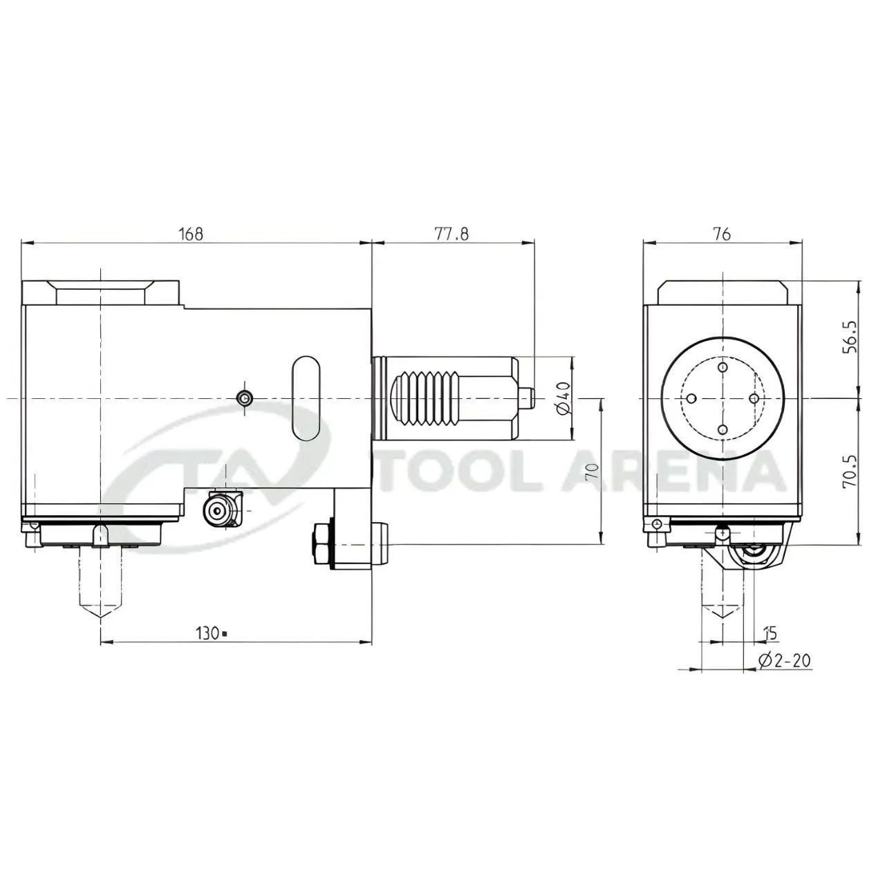 7.074.682 Блок приводной, угловой, хвостовик HYPER QUADREX 200, цанговый патрон ER32A, PRECI-FLEX, правосторонний, внешняя подача СОЖ, EPPINGER