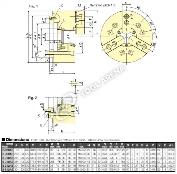B-208A6 3х кулачковый высокоскоростной патрон с открытым центром Kitagawa
