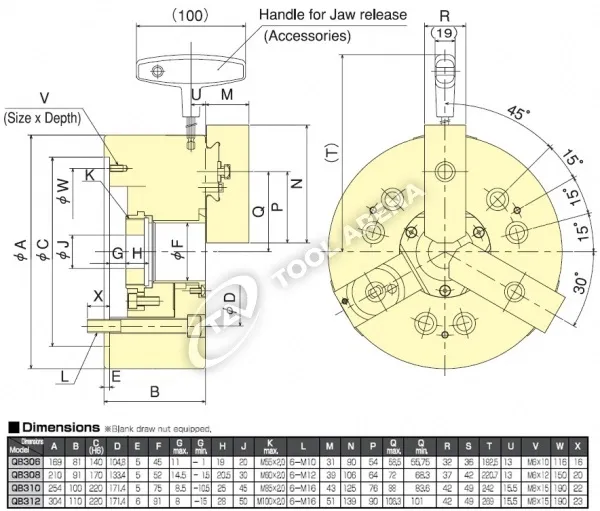 QB-308 3х кулачковый высокоскоростной патрон с открытым центром Kitagawa