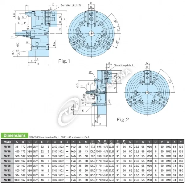 NV-18C15 3х кулачковый высокоскоростной патрон с открытым центром Kitagawa