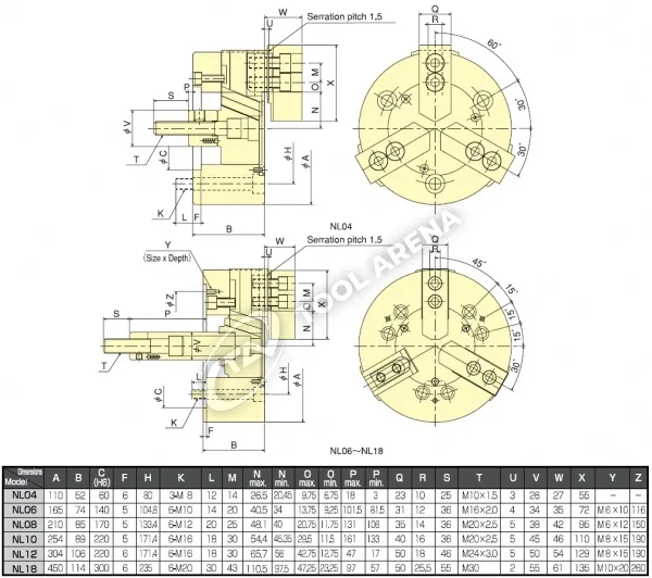 NL-06 3х кулачковый высокоскоростной патрон с открытым центром Kitagawa