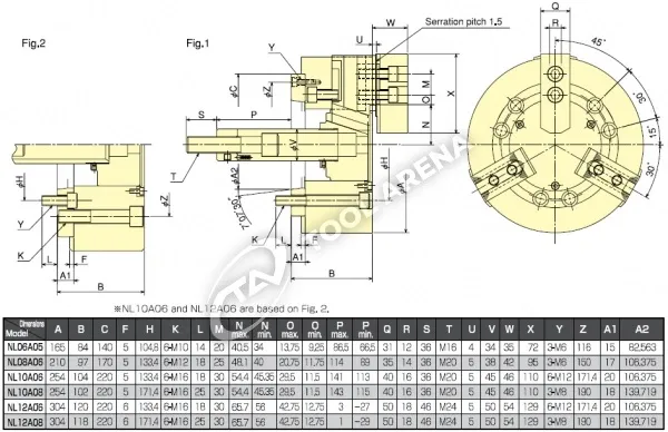 NL-10A06 3х кулачковый высокоскоростной патрон с открытым центром Kitagawa