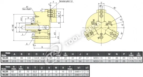 ML-06 3х кулачковый высокоскоростной патрон с открытым центром Kitagawa