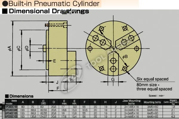 KPC-43C048EP1 4х кулачковый высокоскоростной патрон с открытым центром Kitagawa