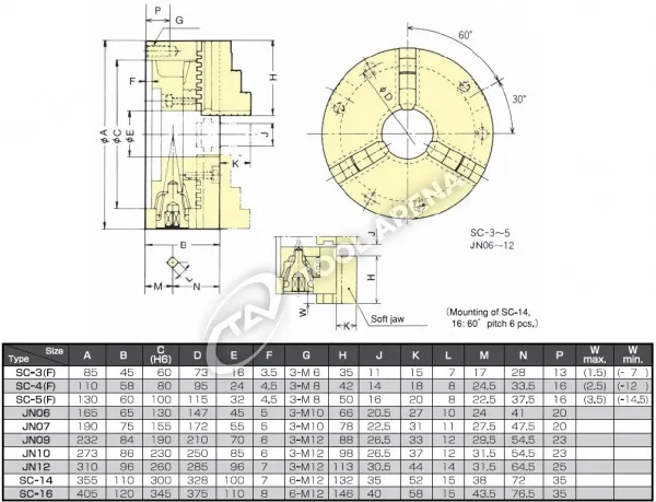 JN-12 3х кулачковый высокоскоростной патрон с открытым центром Kitagawa