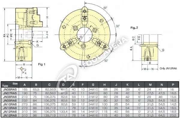 JN-12RA8 3х кулачковый высокоскоростной патрон с открытым центром Kitagawa