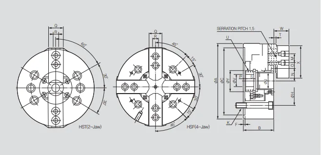 HSF-10 4-х кулачковый высокоскоростной патрон со скозным проходным отверстием Samchully