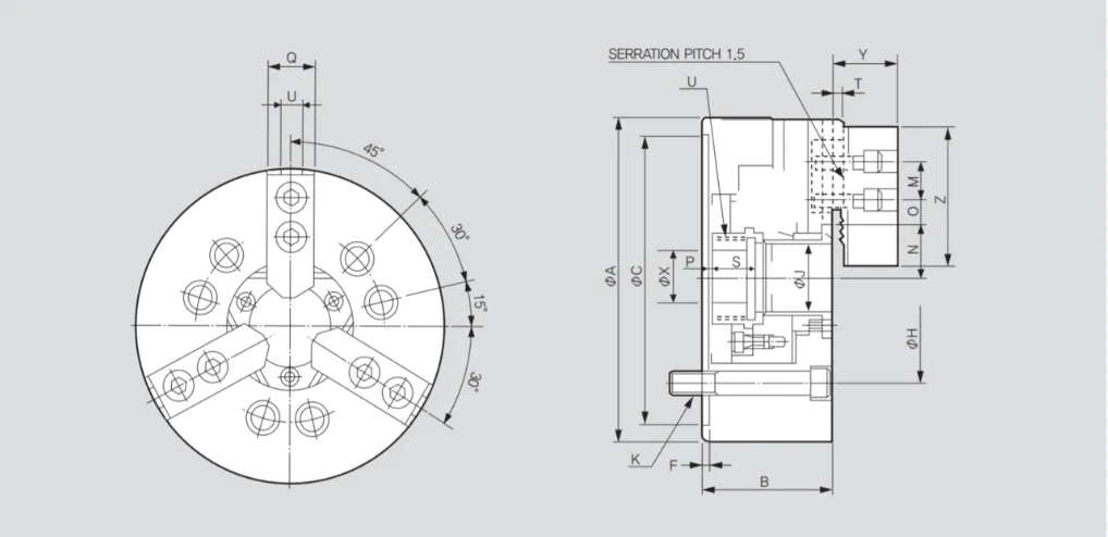 HSL-08 3х-кулачковый высокоскоростной патрон с открытым центром и большой длиной хода Samchully