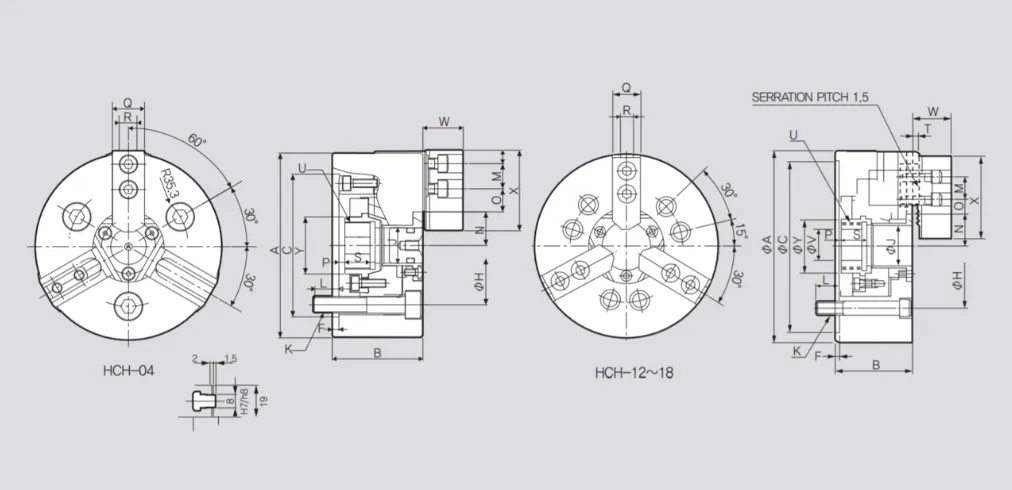 HCH-32 Стандартный 3х-кулачковый зажимной патрон со сквозным проходным отверстием (530мм - 800мм) Samchully