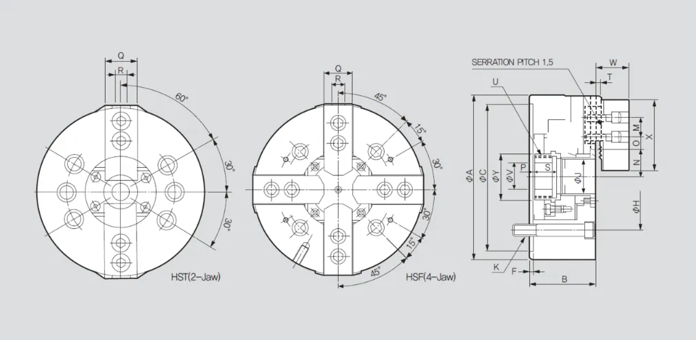 HCHT-15 2х-кулачковый патрон с открытым центром Samchully