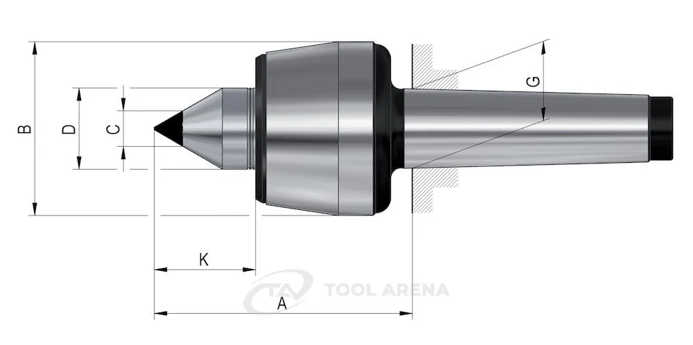 237413 Центр вращающийся, конус Морзе 3, тип 604 HM, с закаленным и шлифованным корпусом, наконечник с твердосплавной вставкой RÖHM