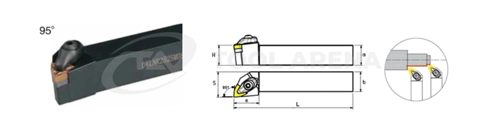 Профессиональный инструмент для продольно точения и подрезки торца на токарных станках. Державка серии DWLNR предназначена для правого направления подачи резца (обозначение «R» в артикуле).